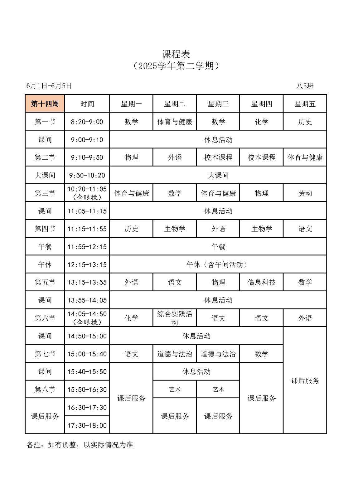 八(5)班课表