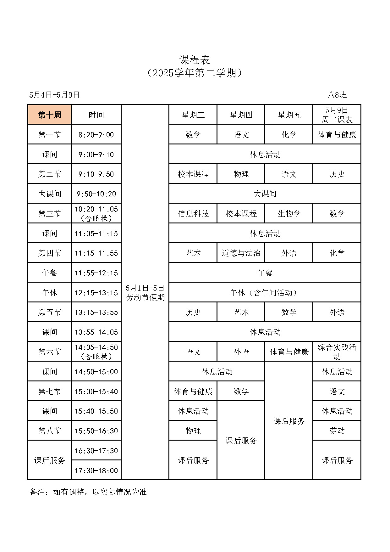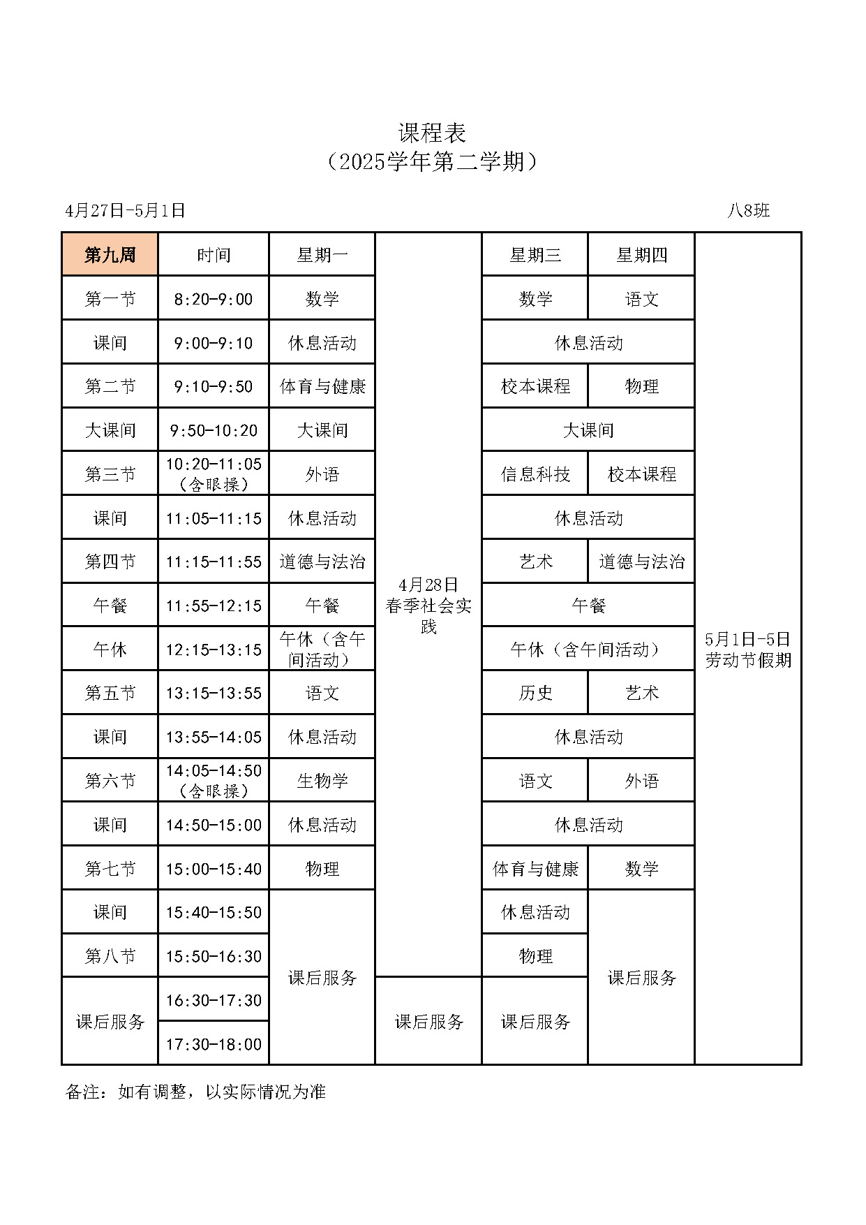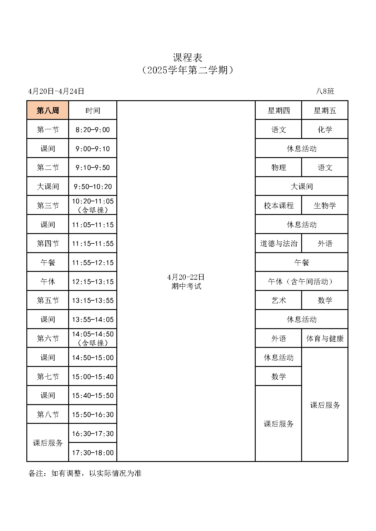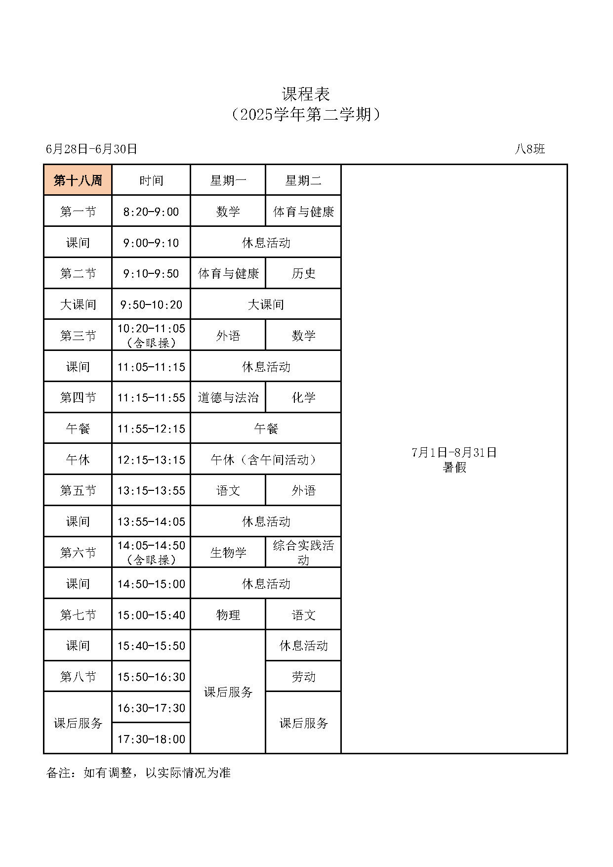 八(8)班课表